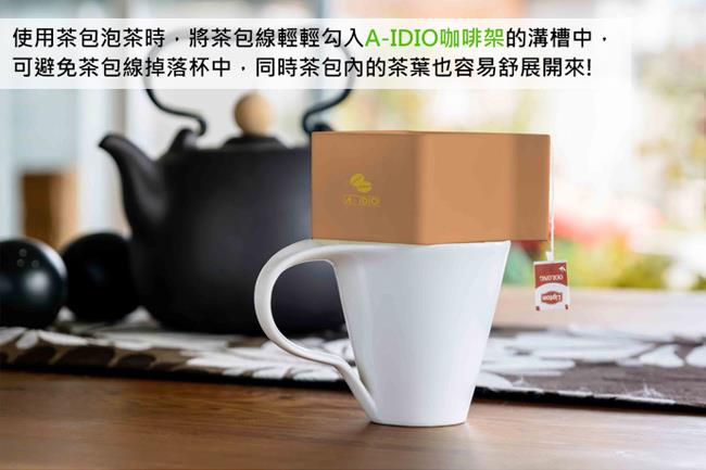 A-IDIO專利並獲獎的濾掛專用架,可以輕鬆的將掛耳咖啡架高在咖啡杯上,避免沖泡時浸泡在咖啡裡,造成過度萃取,產生苦澀味。高度,決定結果。